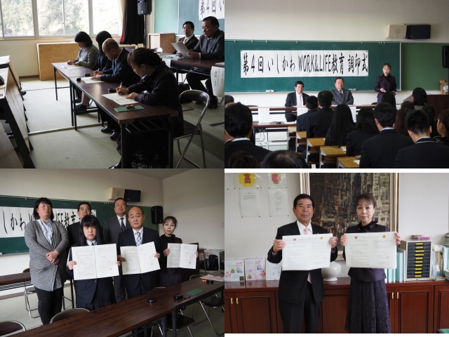 4月17日、「第4回いしかわWORK&LIFE教育調印式」と「石川町と福島県立石川高等学校との連携協力に関する包括協定書締結式」が行われました。